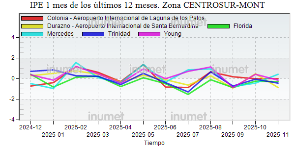 El índice de Precipitación Estandarizado mide el nivel de exceso o déficit de precipitación para un lugar y un período de tiempo dados, comparando el acumulado de precipitación para ese lugar y período contra valores históricos de un período de referencia (1981-2010).