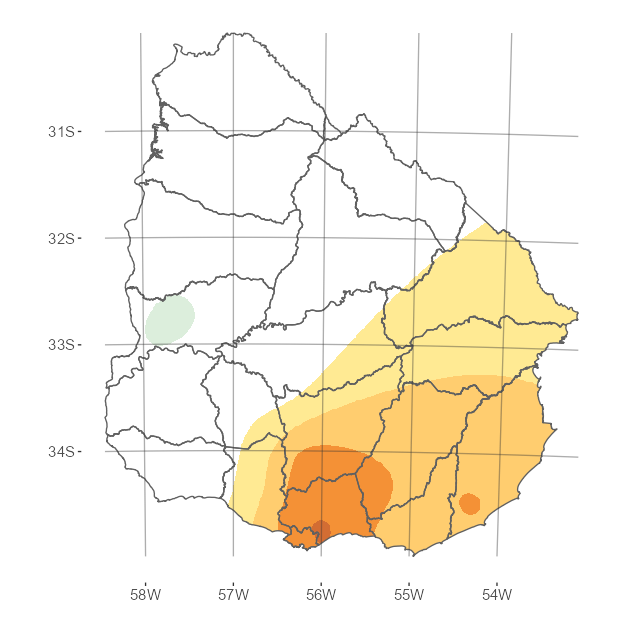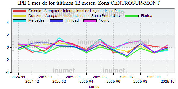 El índice de Precipitación Estandarizado mide el nivel de exceso o déficit de precipitación para un lugar y un período de tiempo dados, comparando el acumulado de precipitación para ese lugar y período contra valores históricos de un período de referencia (1981-2010).