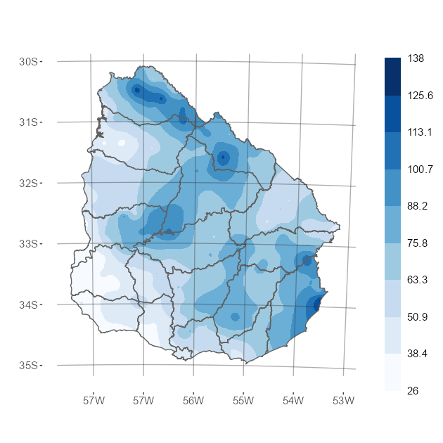 Para los mapas de precipitación acumulada se presentan los valores mensuales, en todos los pluviómetros que constituyen la Red Pluviométrica Nacional en milímetros.